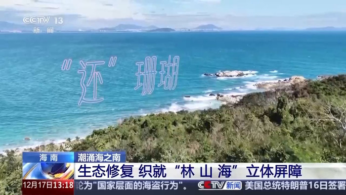 从雨林翠嶂到碧海清波,我们一路向南来到三亚蜈支洲岛,这里不仅是旅游胜地,更是我国首个热带海洋牧场,通过投放人工鱼礁、修复珊瑚等,在海底为海洋生物“造房子”。
